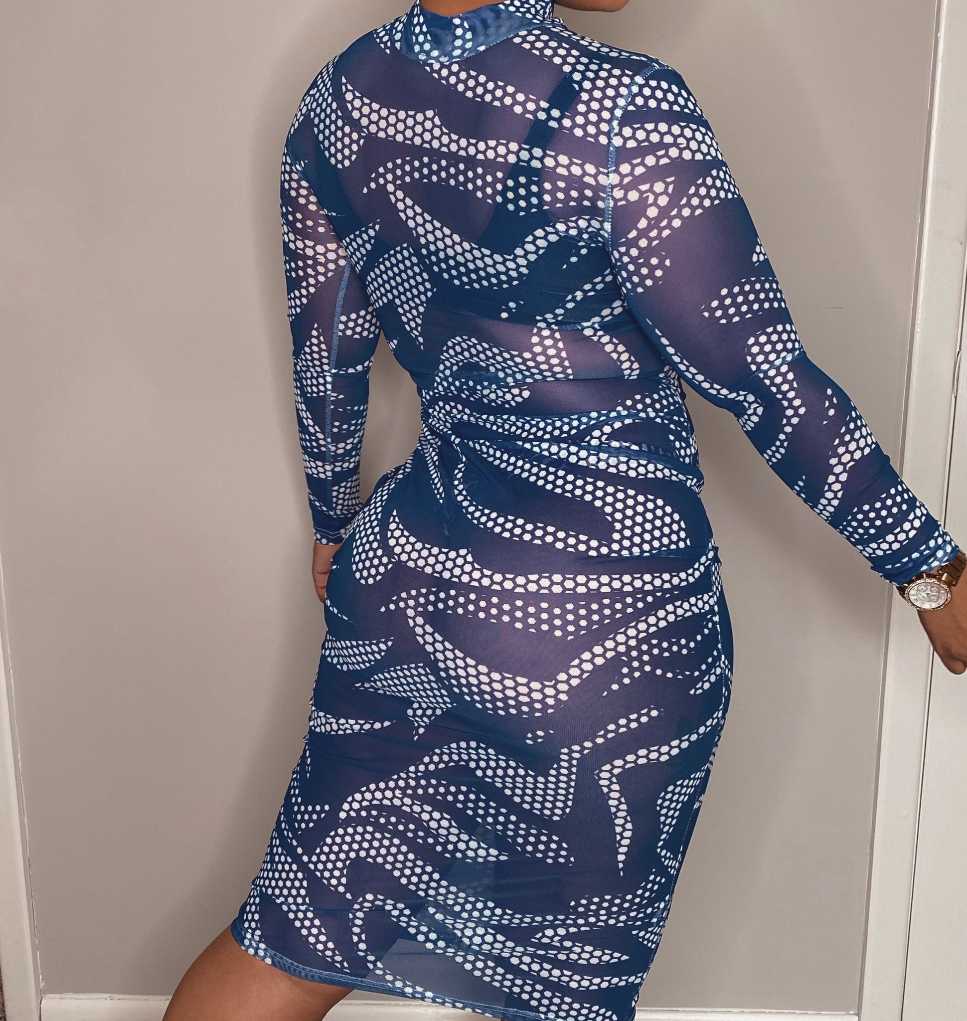 Long Sleeve Sheer Bodycon Dress with gloves.